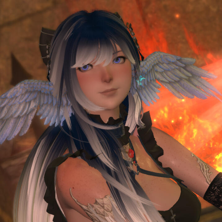 "Aldalome Losht. Born a bastard child of the Azim Steppe, a Raen born into the tribes of Xaela. On top of that, a genetic anomaly; she being born with feathers and wings as opposed to horns and a scaled tail. Alda was also found to have been born aspected with aether leaning stronger on the umbral end. Due to all these circumstances, the tribes believed her to be a blessing sent, born of Azim and Nhaama; and began to worship her as the true queen of the Steppe, a child goddess.Her rule was never a public one, as she was taken and locked away below the Dawn Throne, the tribes desperate to keep her safe from any that may bring the child of their deities harm. For 20 long years she was kept locked away, ostensibly for her own safety; and for 15 of those years she trained her body and did all she could to weaken the bars on the window leading to her longed for freedom.On one fateful night by the light of the full moon, she was finally ready, putting one last bit of pressure on the bars and breaking free of her cage, the small bird escaping into the night and making her way off the Steppe, stowing away on a boat bound to Eorzea.Upon arrival in her new country, she was directed to the Adventurer's Guild in the Drowning Wench Tavern. Her story as the Warrior of Light had begun, her world opening up and ready for her to explore. Alda encountered many a challenge in her adventures, through trials and tribulations, facing down gods, machines and those inbetween, her life was never dull, but she found herself wanting... wanting something more, new, different. A restless feeling she'd had before but put it out of her mind so many times before. Eventually, she could deny her desires no longer, finding a poster that caught her eye and went off to search out another job at the bathhouse known as Afterglow. It was there that she finally found what she had truly desired, receiving and giving pleasure, as a courtesan of the night."